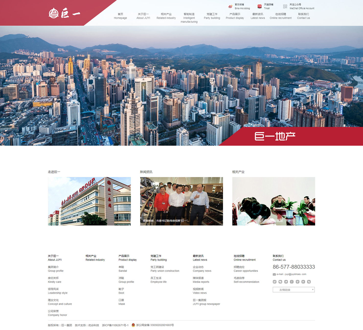 巨一集團始創(chuàng)于1988年,現(xiàn)已發(fā)展為集鞋類、口罩制造,醫(yī)療器械、國際貿(mào)易、房地產(chǎn)、商場、酒店等于一體的無區(qū)域企業(yè)集團。員工5000多名。企業(yè)先后獲得中國鞋類出口基地龍頭企業(yè)、國家高新技術(shù)企業(yè)、海關(guān)AEO高級認(rèn)證企業(yè)、中國馳名商標(biāo)、中國真皮鞋王、省AAA級“守合同重信用”企業(yè)、浙江名牌、浙江出口名牌、浙江省質(zhì)量獎、溫州市領(lǐng)軍企業(yè)等榮譽稱號。黨和國家領(lǐng)導(dǎo)人習(xí)近平、張德江、賈慶林、羅干等先后蒞臨公司視察或親切接見公司領(lǐng)導(dǎo)。