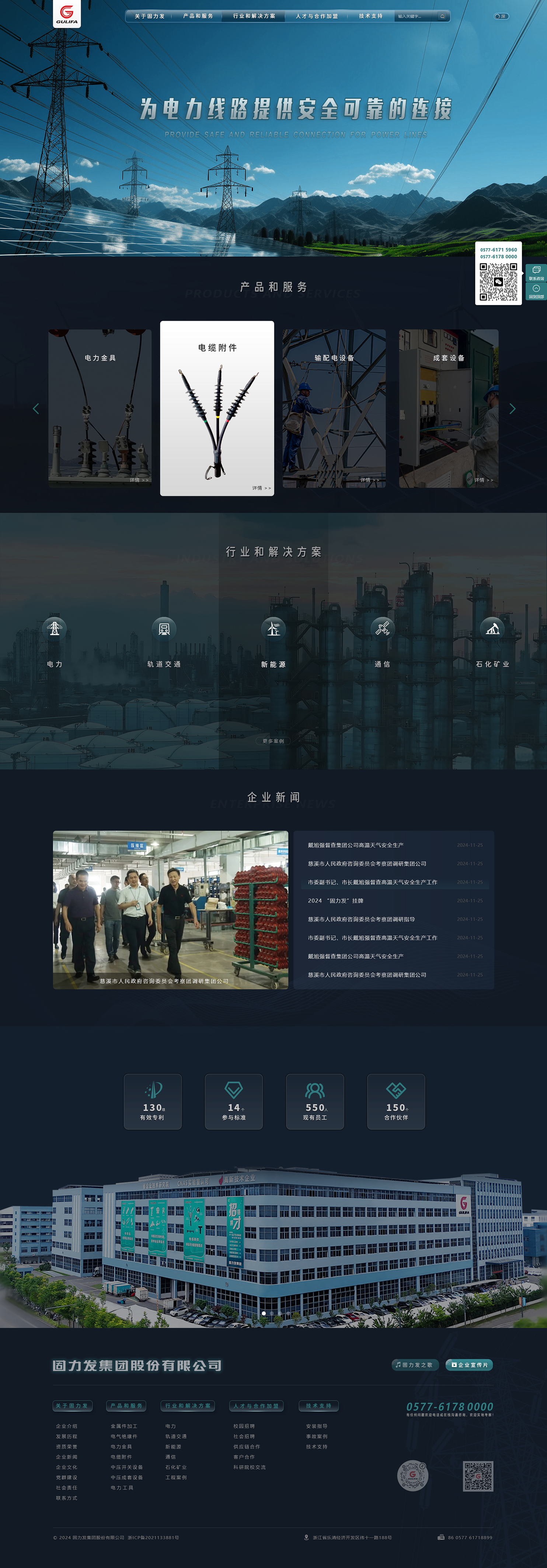 固力發(fā)集團是電力金具和電纜附件等輸配電線路器材的專業(yè)化制造企業(yè),現有樂清、合肥兩個工廠,集團公司現有員工550人。公司在業(yè)內較早通過了ISO9001質量體系認證、ISO14001環(huán)境體系認證、OHSAS18001職業(yè)健康和安全體系認證、知識產權管理體系認證、安全質量標準化二級審查。獲得浙江省著名商標、浙江省知名商號、AAA級守合同重信用單位、樂清市市長質量獎等榮譽。