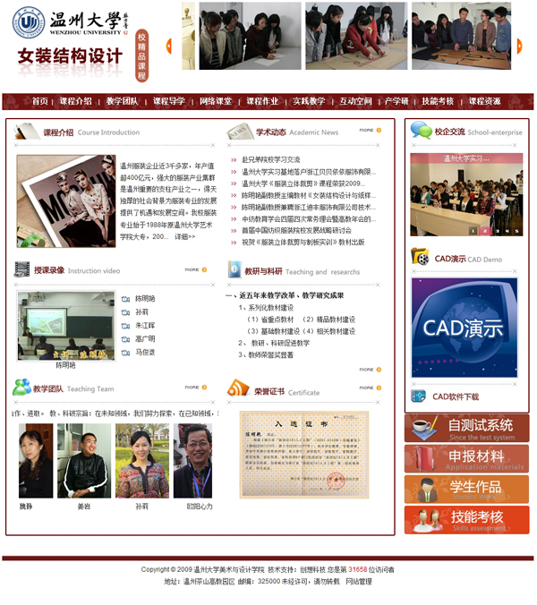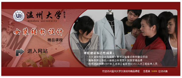 我公司為溫州大學(xué)服裝學(xué)院,建立的女裝結(jié)構(gòu)設(shè)計(jì)精品課程 經(jīng)溫州市教育局評(píng)審被評(píng)為溫州市高等學(xué)校市級(jí)精品課程網(wǎng)站。這也是我公司開(kāi)創(chuàng)了第二個(gè)市級(jí)精品課程網(wǎng)。同時(shí)也慶祝公司在精品課程網(wǎng)站制作方面更上一個(gè)新的臺(tái)階,同時(shí)希望以后能夠?yàn)楦叩仍盒7?wù),創(chuàng)立更好的網(wǎng)站。